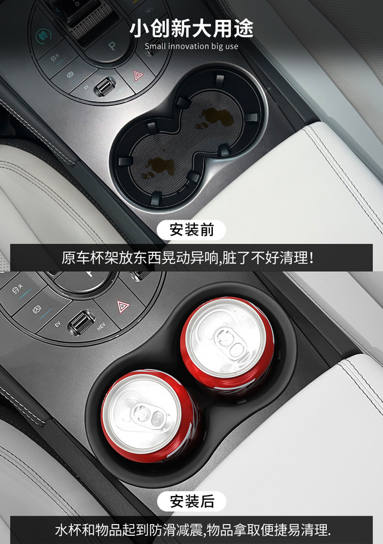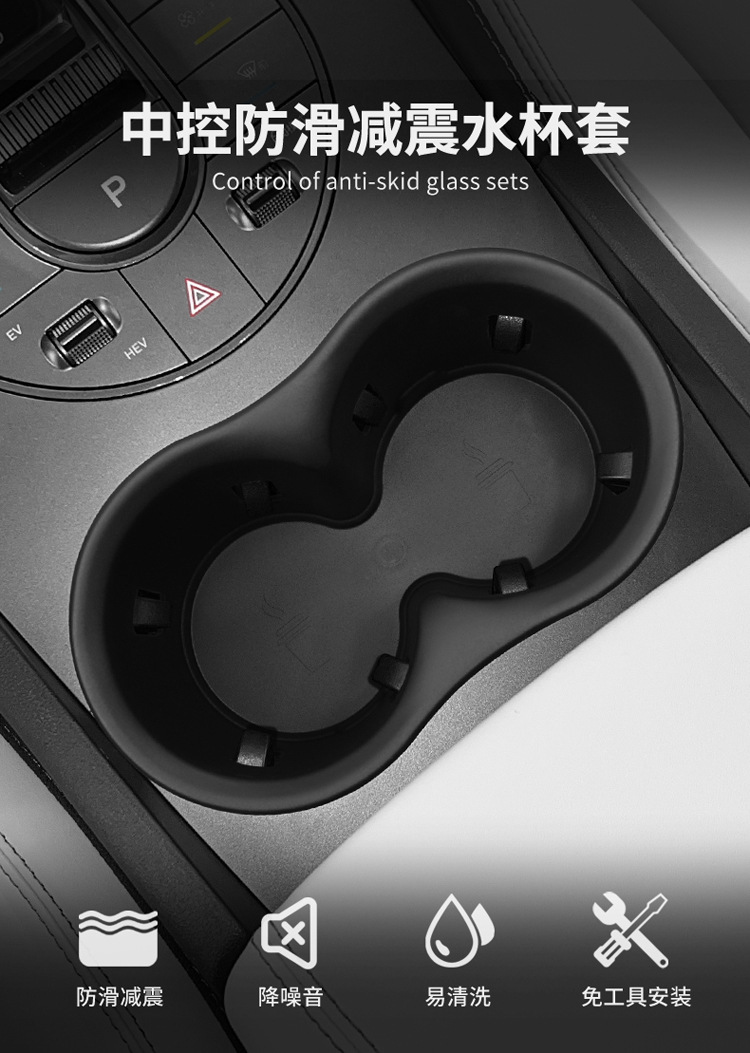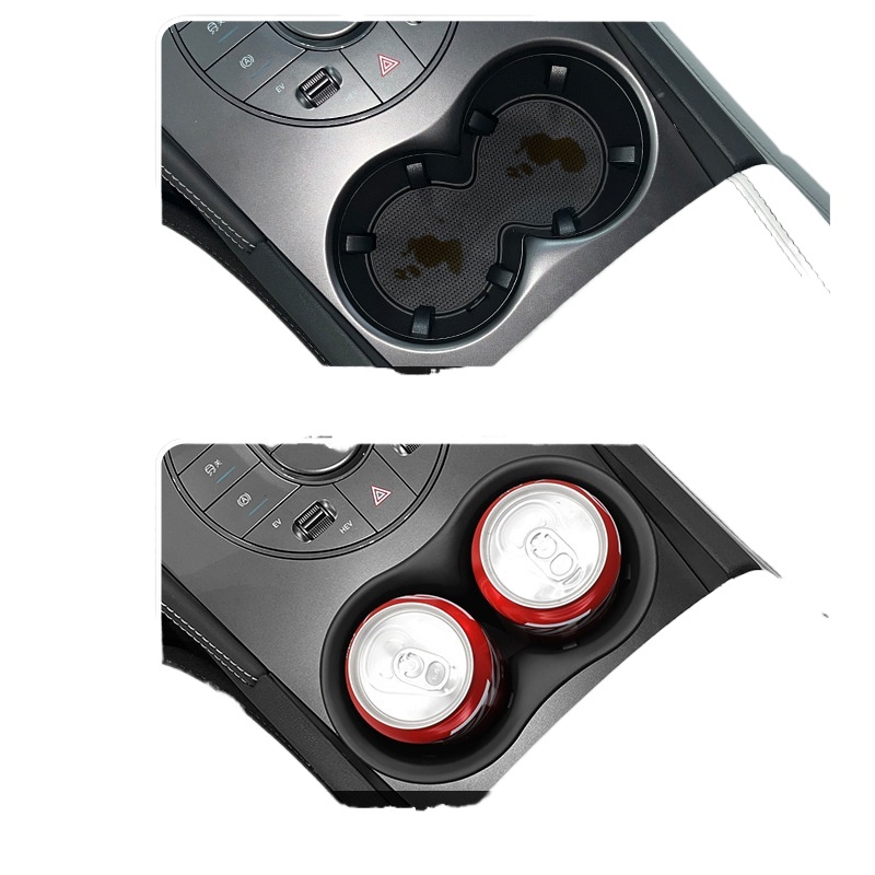 - Performance-Driven Design: Features a dual-cup holder design with integrated shock absorption and anti-slip properties, as shown, to securely hold beverages and small items while driving.