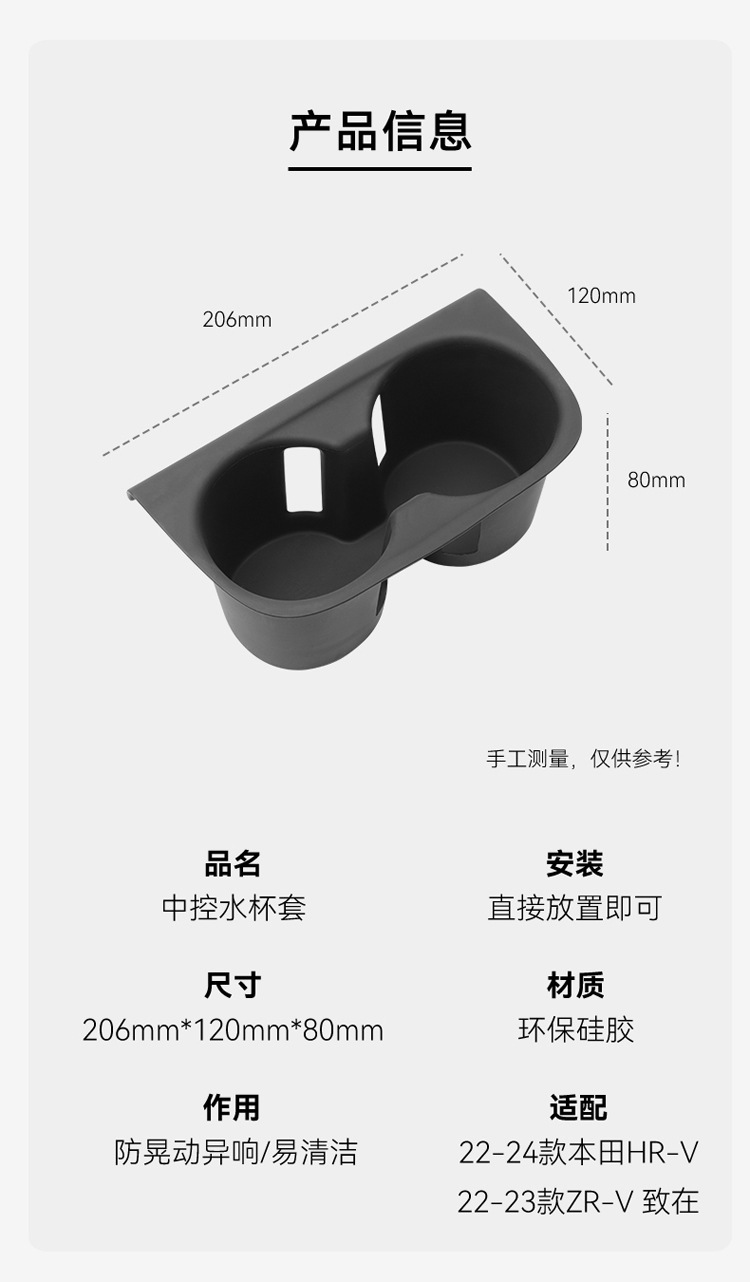 Center Console Anti-slip Shock-absorbing Cup Holder for Honda HR-V ZR-V 2022-2024