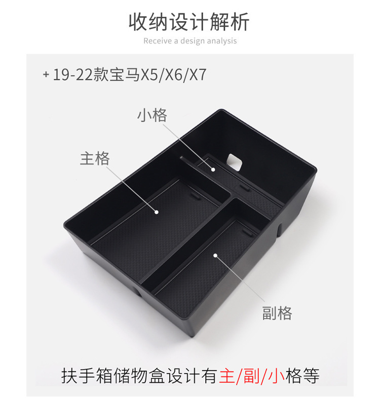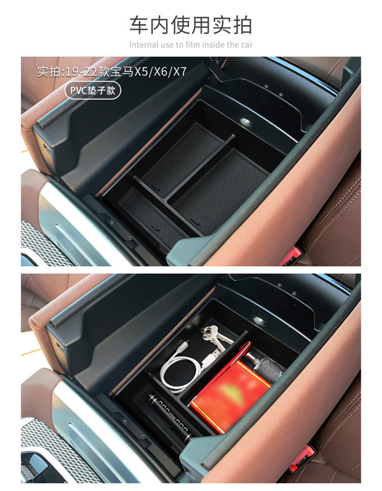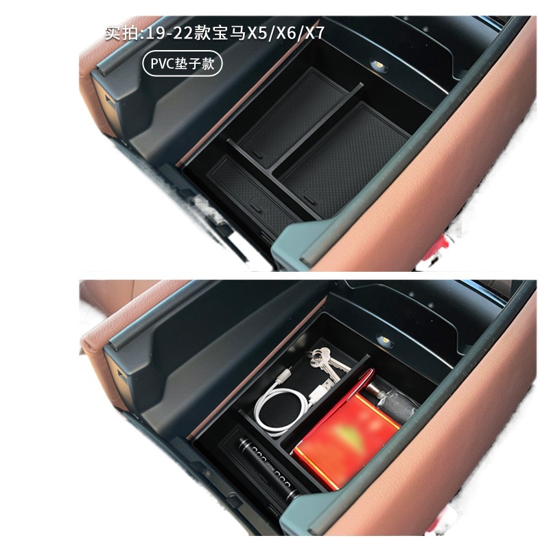 Center Console Armrest Organizer Tray Divider with PVC Mats for BMW X5 X6 X7 2019-2022