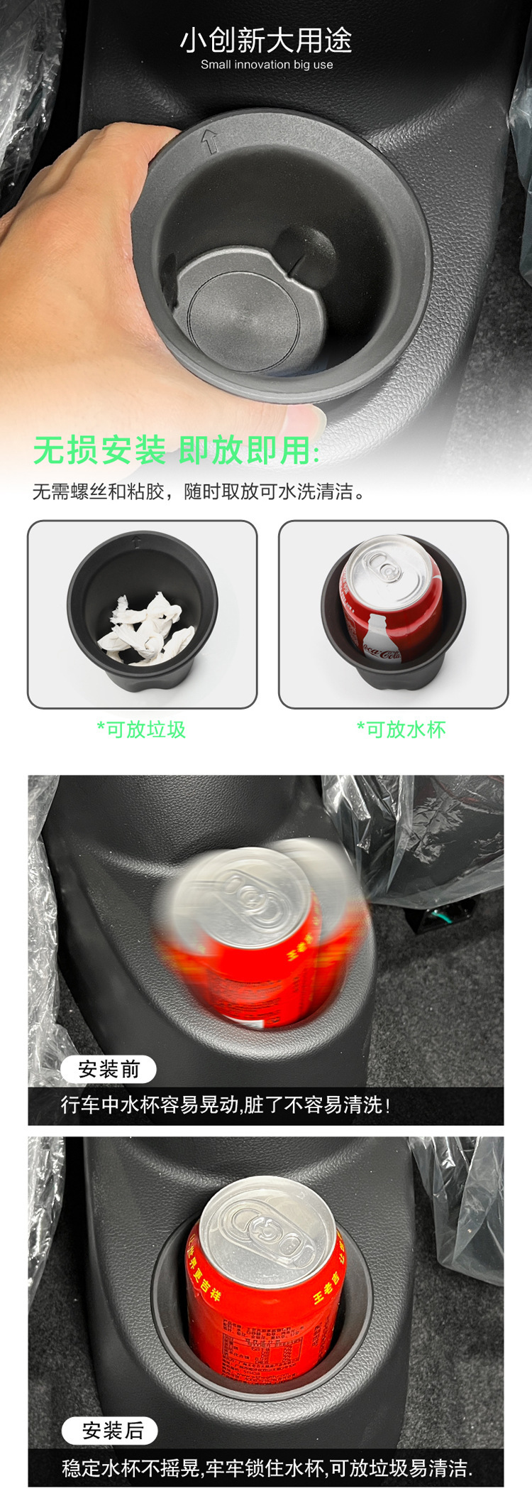 - Function-Driven Design: Integrates cup holders and storage space to prevent items from shifting and reduce noise, enhancing interior organization.