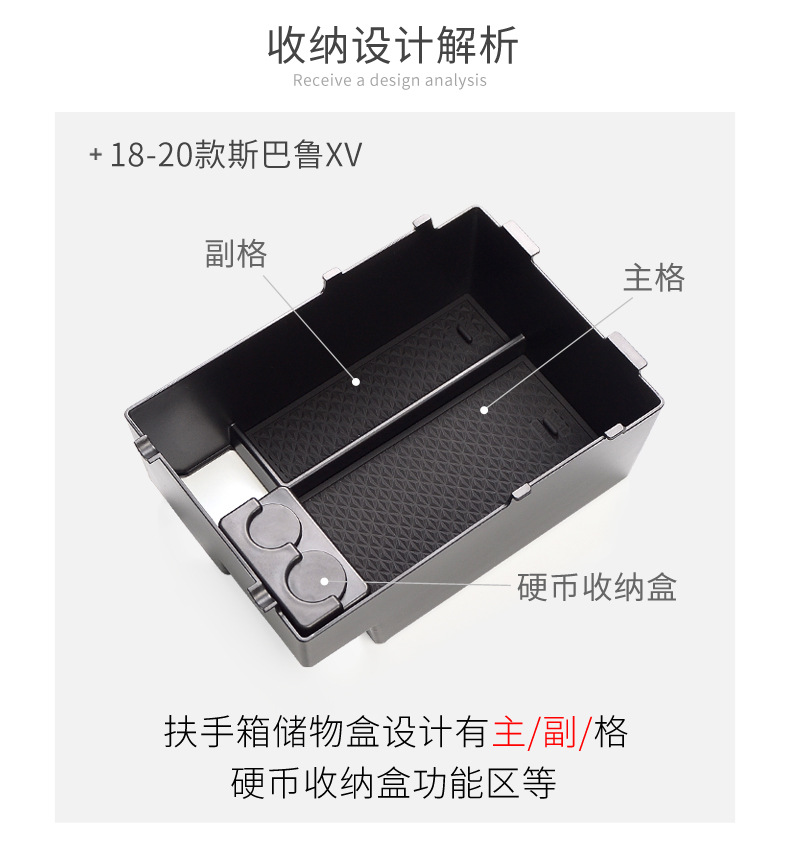 Center Console Armrest Storage Box Insert Tray Organizer for Subaru XV 2018-2020