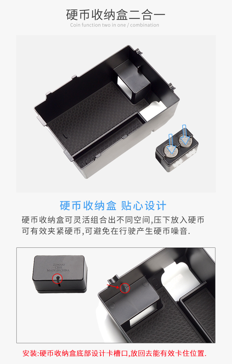 - Performance-Driven Design: Features multiple compartments, including a coin holder and cup holder area, to efficiently organize small items and optimize space within your armrest.