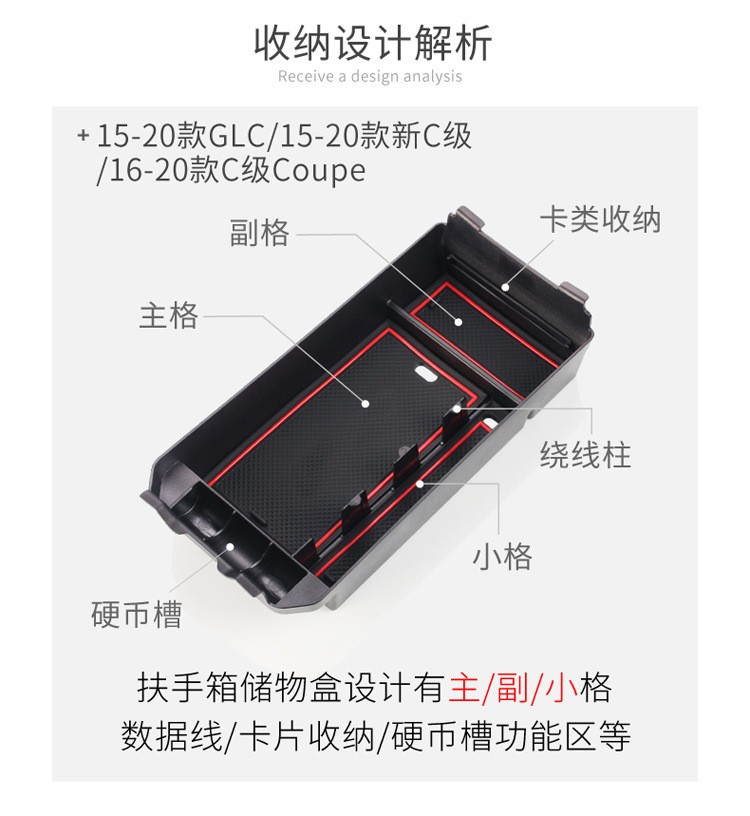 Center Console Armrest Storage Box Insert Tray Organizer for Mercedes-Benz GLC C-Class C200 C200L 2015-2020
