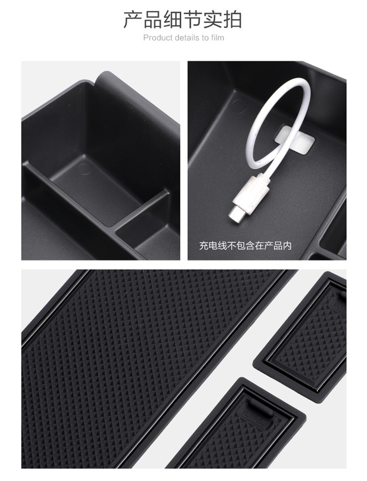 - Performance-Driven Design: Features multiple compartments and an anti-slip mat, as seen, to store items neatly and prevent rattling.