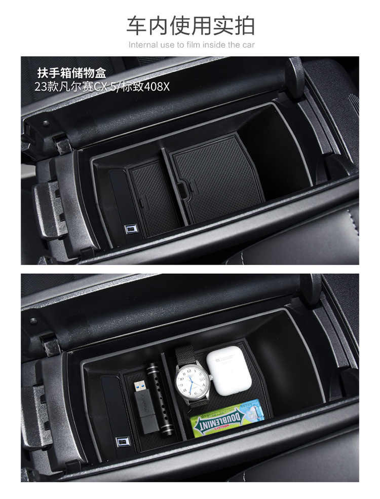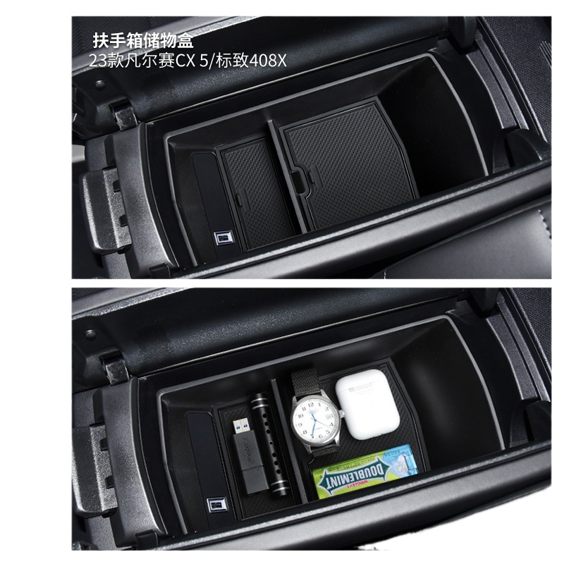 - Performance-Driven Design: Features a multi-compartment design with textured anti-slip liners to help organize small items like keys, coins, and phones, maximizing the storage space and keeping the armrest tidy.