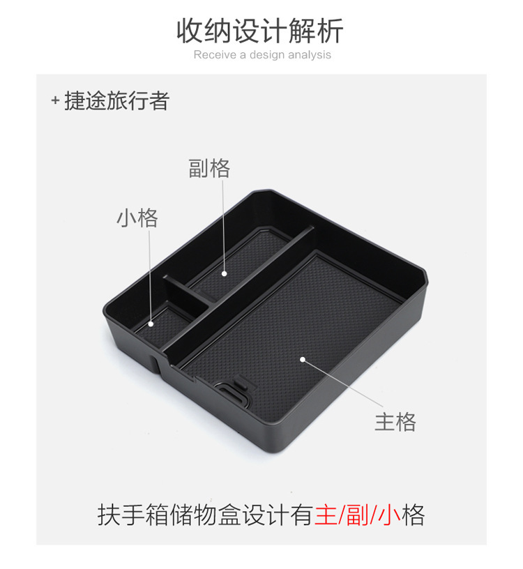 - Performance-Driven Design: Features a multi-compartment design with master,副格 (secondary), and 小格 (small) sections for organized storage, as shown, to efficiently partition the armrest space.