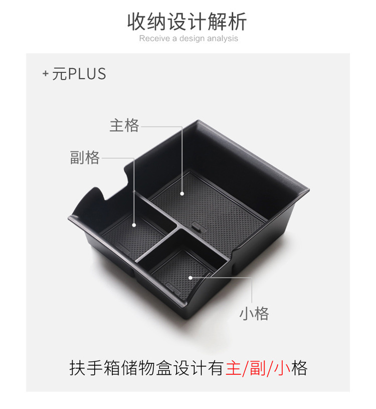 Center Console Armrest Storage Box Organizer Insert Tray with Non-Slip Mats for BYD Yuan PLUS 2022 2023