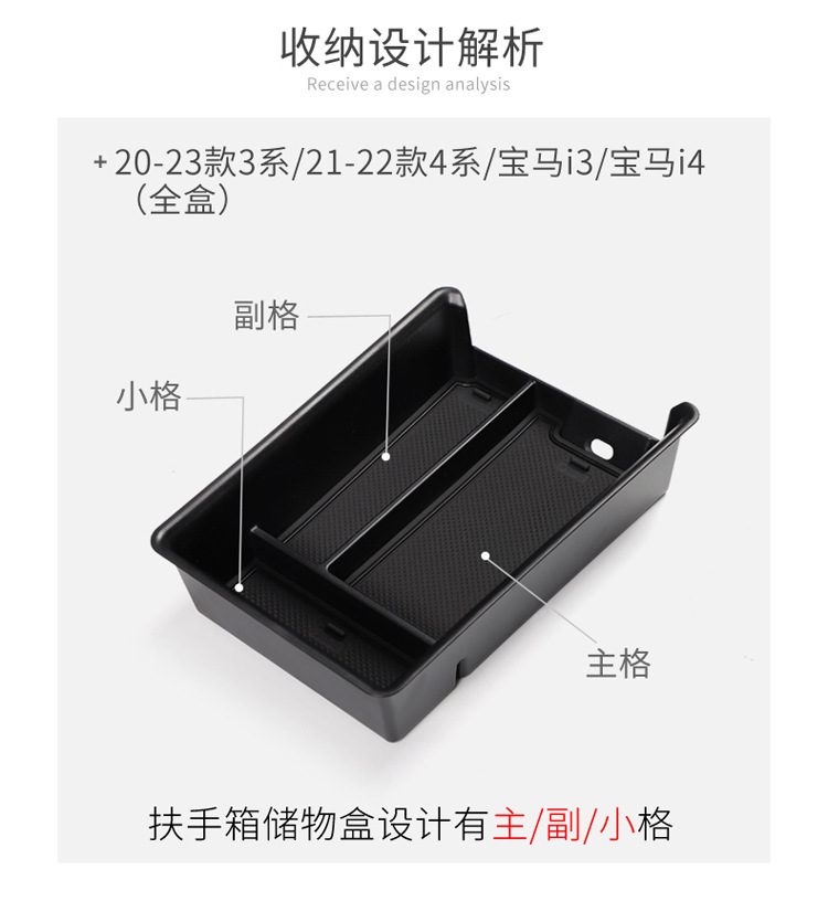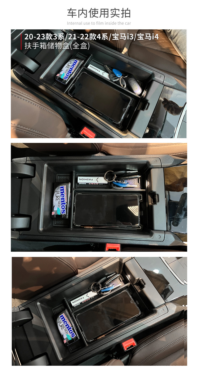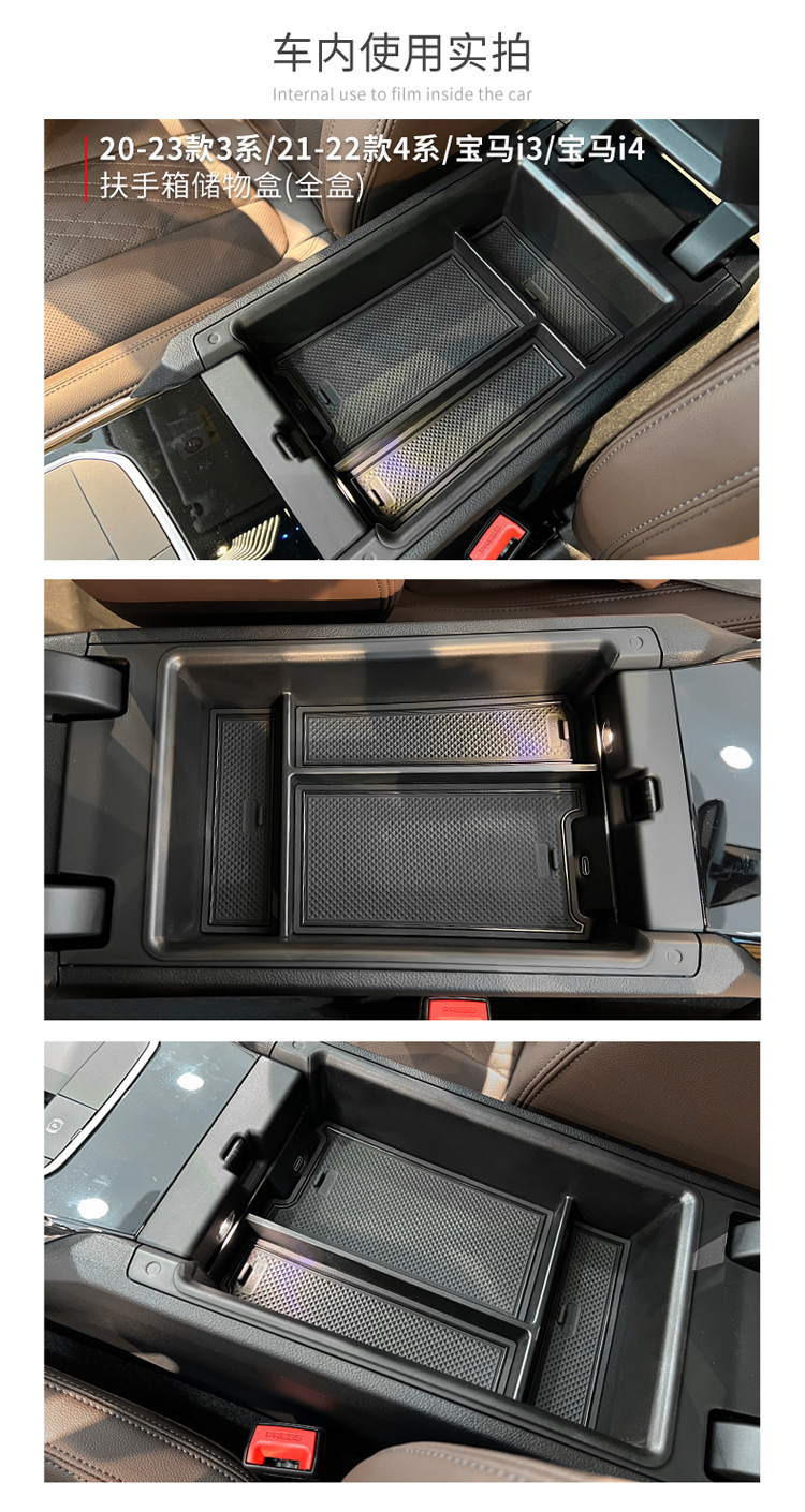 Center Console Armrest Storage Box with Non-Slip Mats for BMW 3 Series 4 Series i3 i4 2022-2023