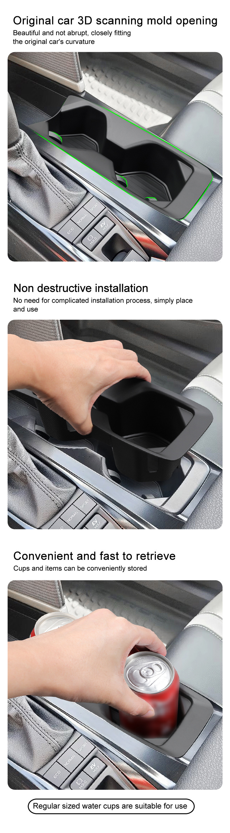- Performance-Driven Design: Features an enhanced limit and storage design to securely hold beverages and small items, preventing movement and rattling while driving, as evident from its shape.