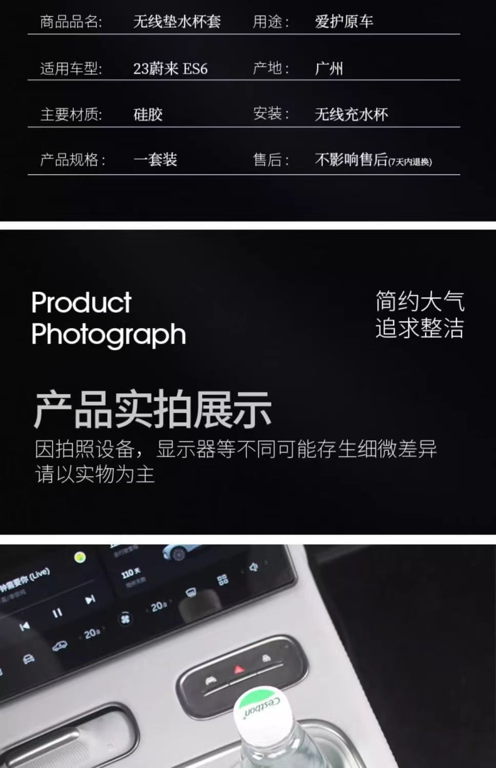 - Complete Package: Includes 1x Nio ES6/EC6 Center Console Cup Holder Insert with Wireless Charging Pad functionality, exactly as pictured. Please verify fitment details before purchasing.