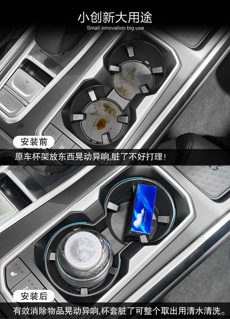 - Functionality Enhancement: Designed to prevent items in the cup holder from shaking and making noise, ensuring a clean and organized console.