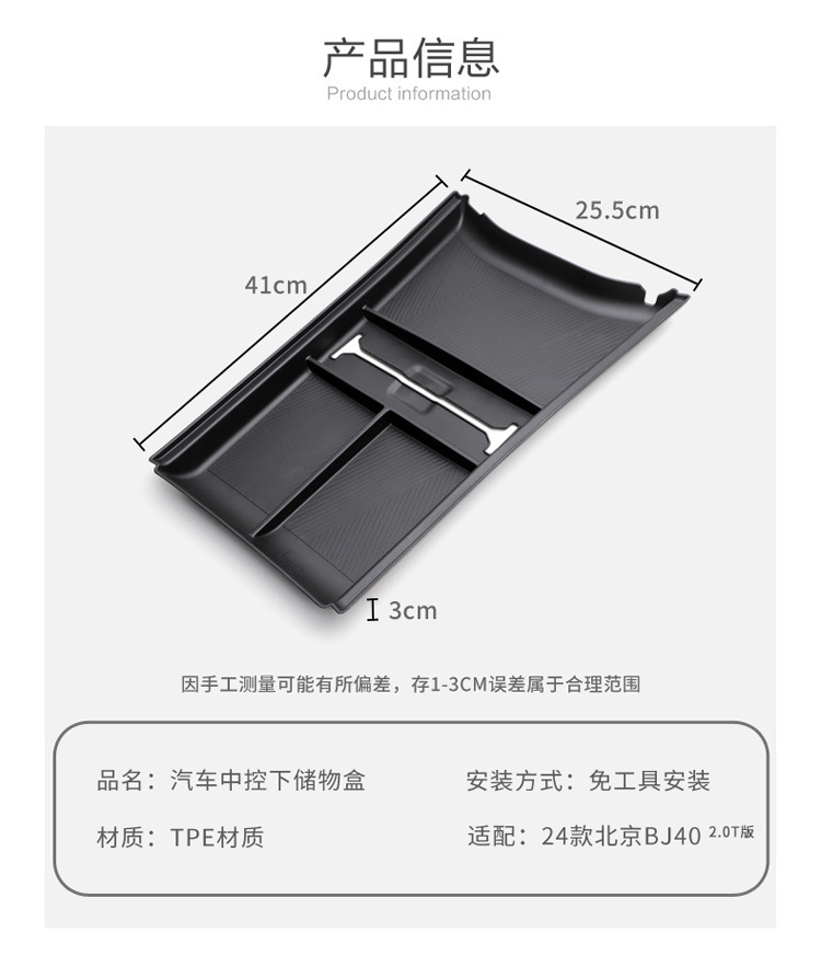 Center Console Lower Storage Box Divider Organizer Tray for 2024 Beijing BJ40