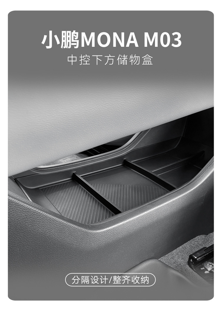 - Direct Fitment: A perfect replacement for the original center console lower storage area. Compatible with XPeng MONA M03 2024.