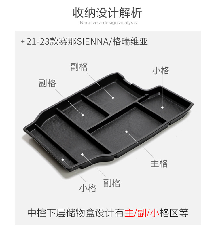 - Direct Fitment: A perfect replacement for the center console lower storage area. Compatible with Toyota Sienna 2021-2024 models.