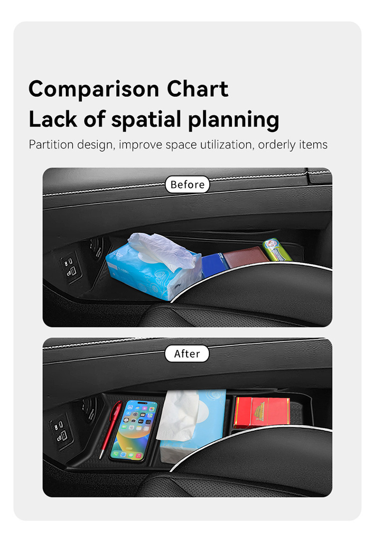 - Performance-Driven Design: Designed with multiple compartments to efficiently organize small items, preventing clutter and providing easy access while driving.