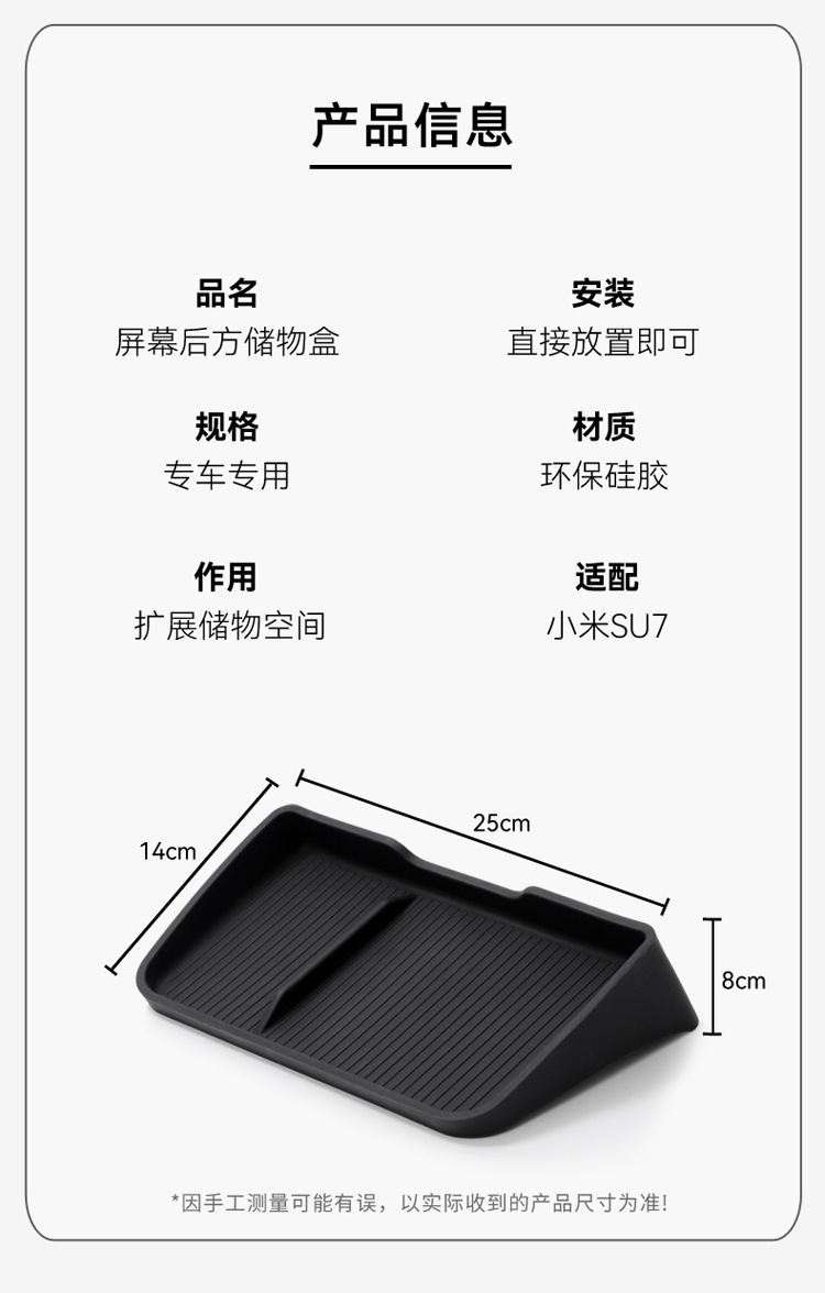 - Direct Fitment: A perfect replacement storage solution for the Xiaomi SU7 2024 model. Designed specifically for the center console screen area, as shown.