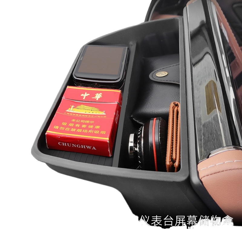 - Performance-Driven Design: This organizer box is designed to fit snugly around the screen base, offering partitioned storage to help keep your car’s interior tidy and organized.