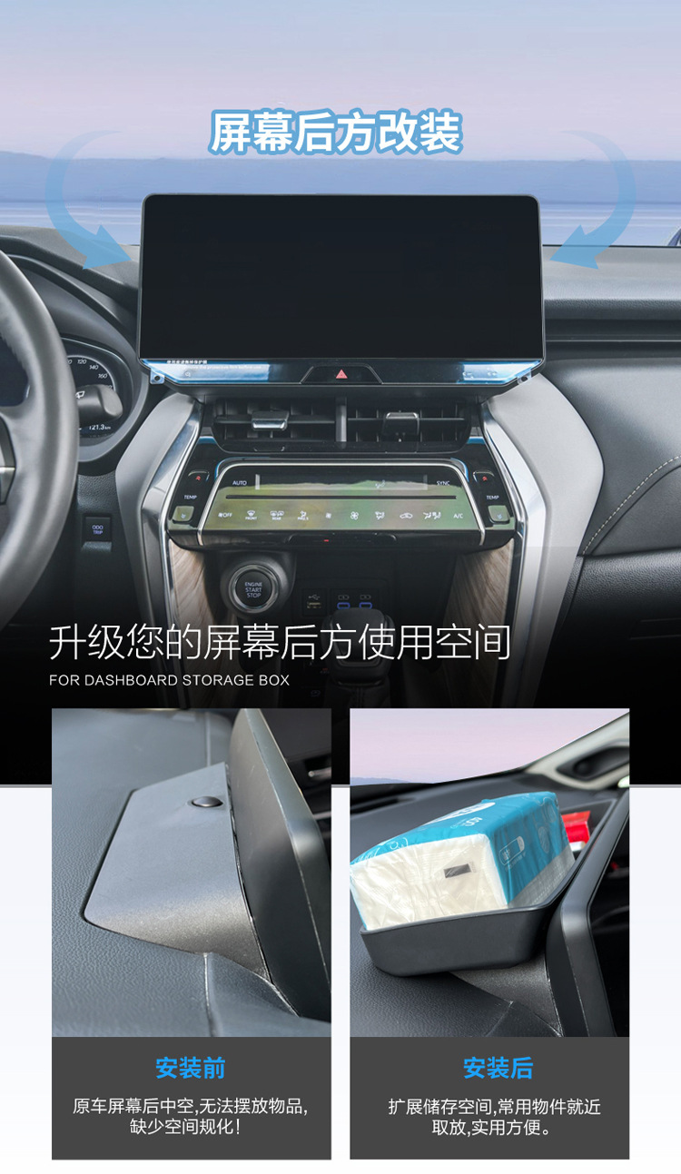 - Direct Fitment: A perfect replacement for the center console screen storage area. Compatible with Toyota Harrier 80 Series (2022 models), Toyota Venza (2022 models).