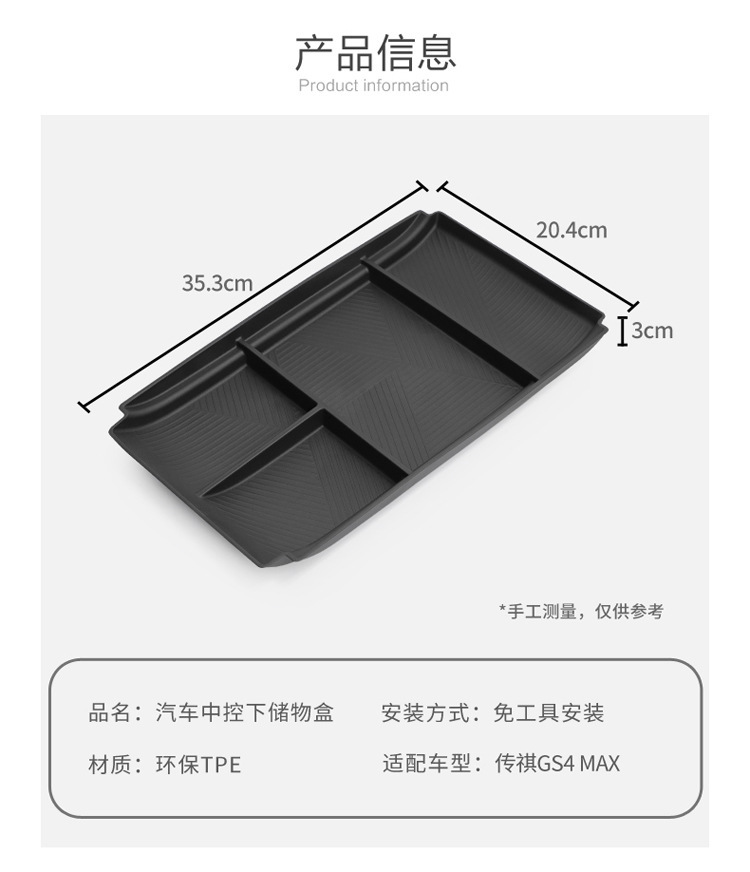 - Direct Fitment: A perfect replacement for the original center console storage. Compatible with 2024 GAC Trumpchi GS4 MAX.