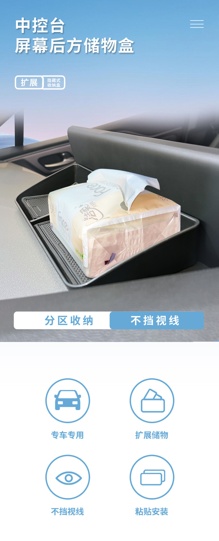 - Performance-Driven Design: Divided compartments for efficient storage of tissues, mints, and other small items, as pictured, keeping your car tidy and organized.