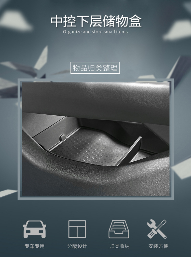 - Performance-Driven Design: Designed to sit securely under the center console, providing extra storage space and featuring a non-slip textured mat for item stability.