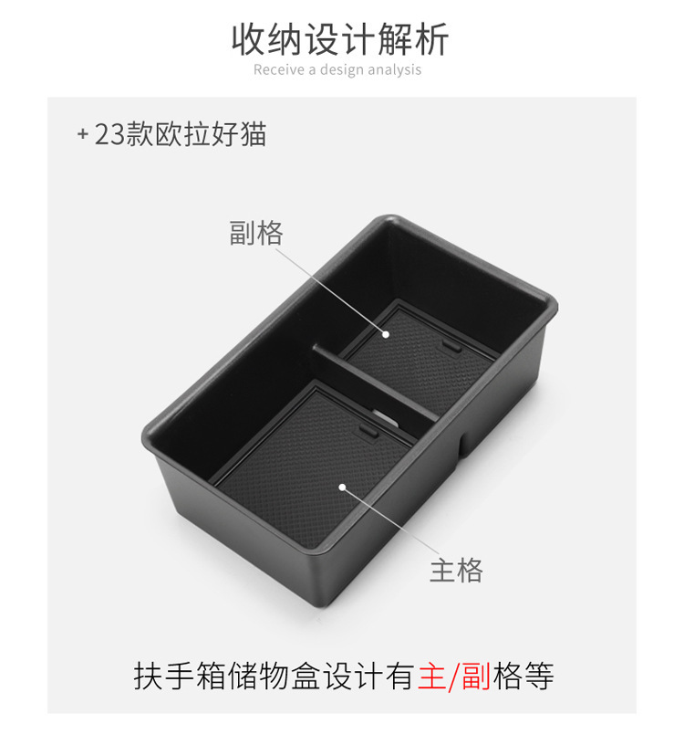 Central Console Armrest Storage Box Organizer Insert Tray with Rubber Mats for ORA Funky Cat 2023 2023