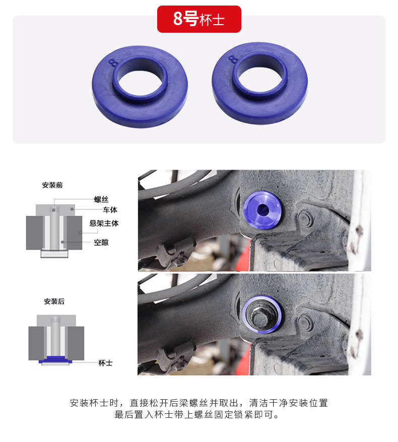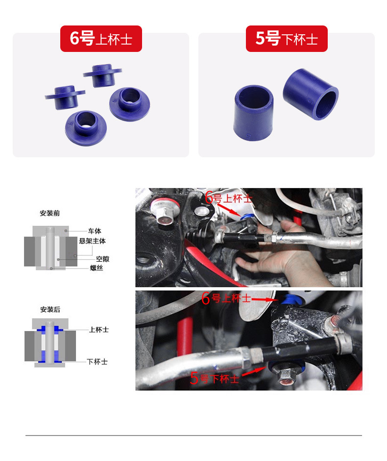 - Enhanced Driving Performance: Upgrade your vehicle’s handling and stability with these reinforcement bushings. Experience improved steering response, reduced body roll, and a more controlled, confident driving experience, especially during aggressive maneuvers or cornering.
