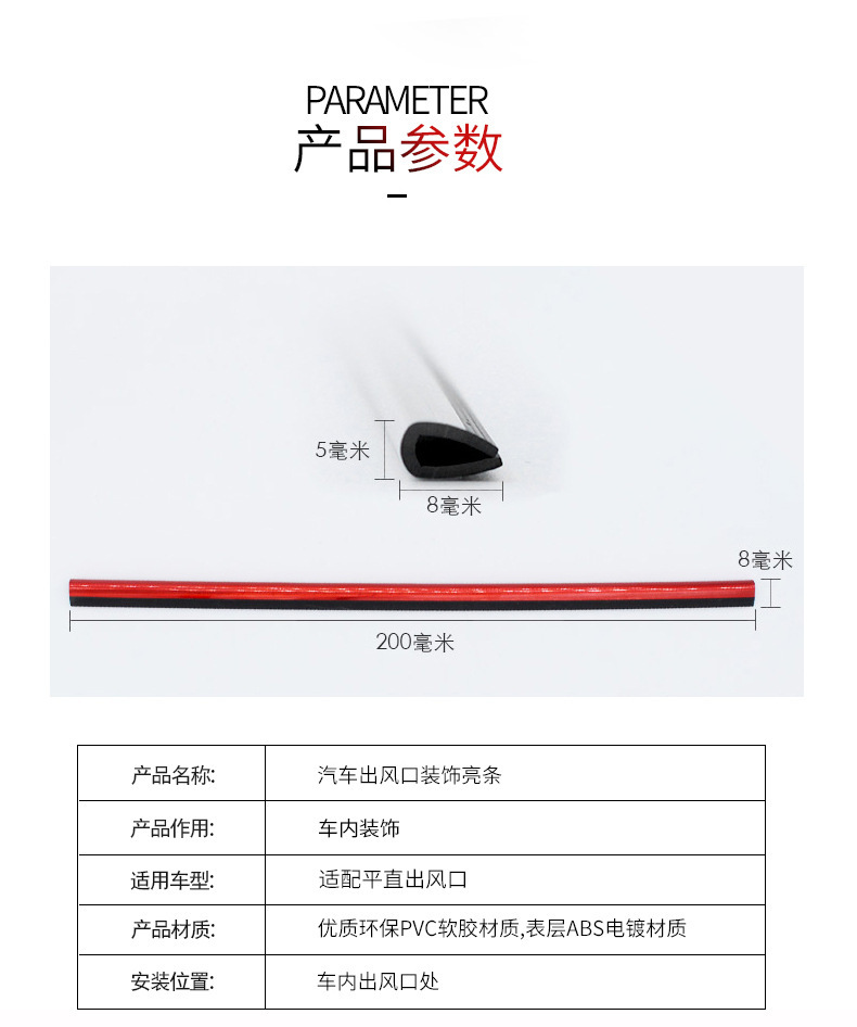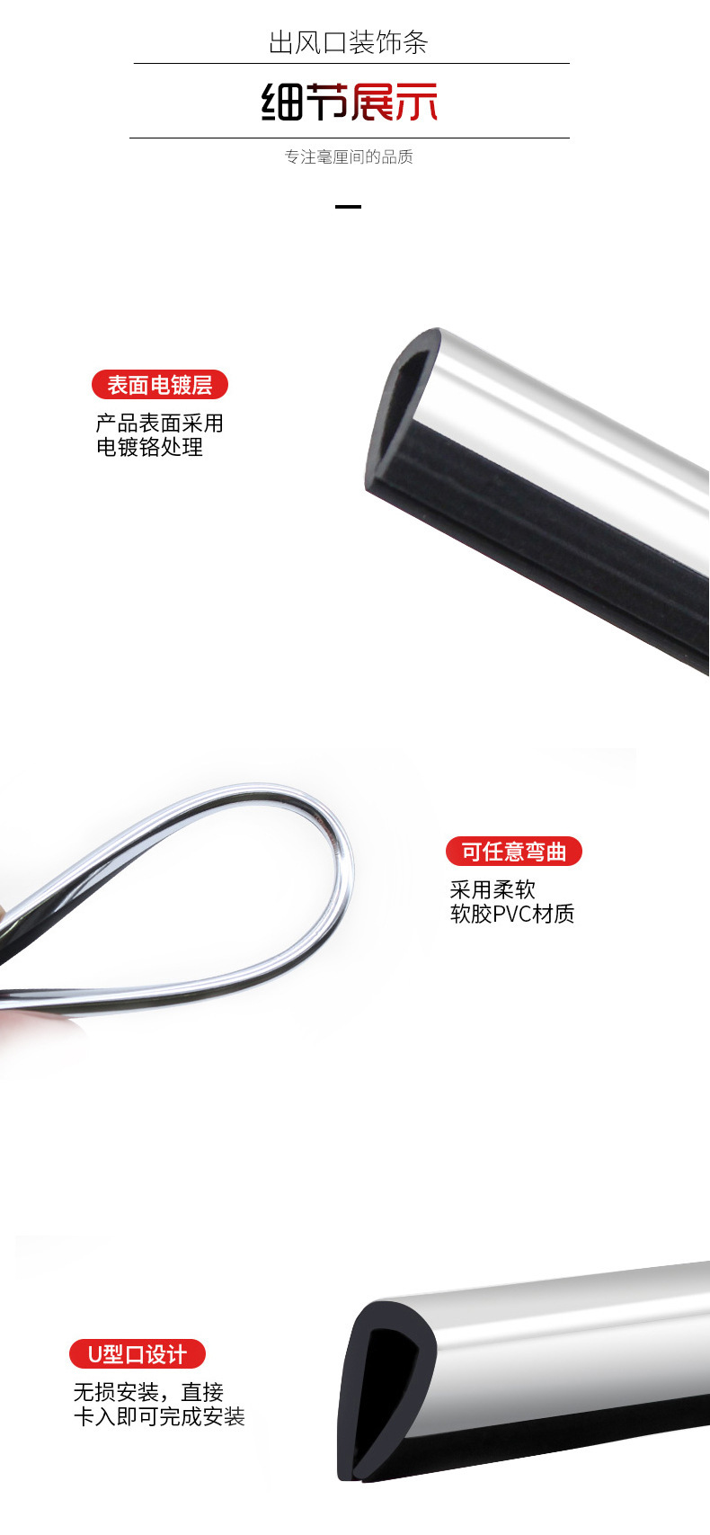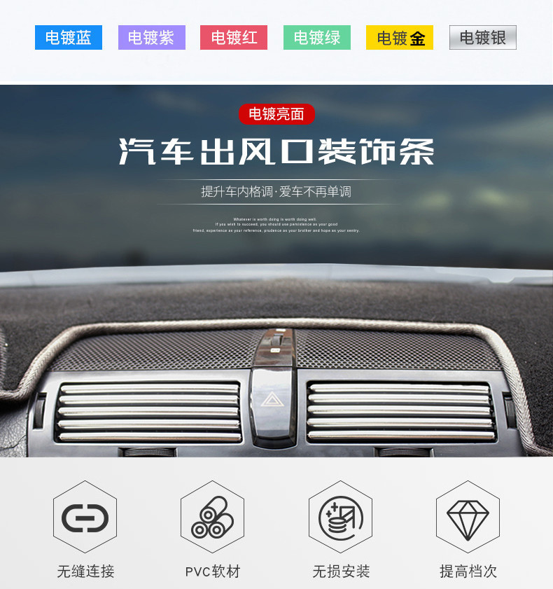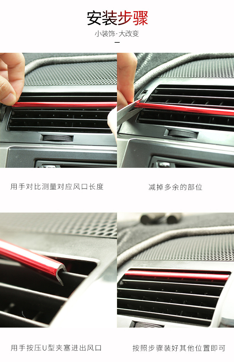 Colorful Chrome Plated U-Shape Car Air Vent Outlet Trim Strip Clip Decor for Universal Vehicle