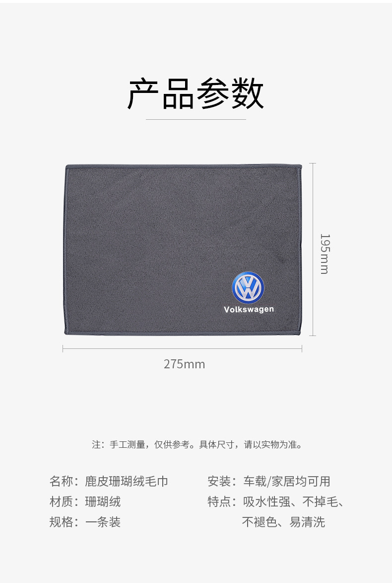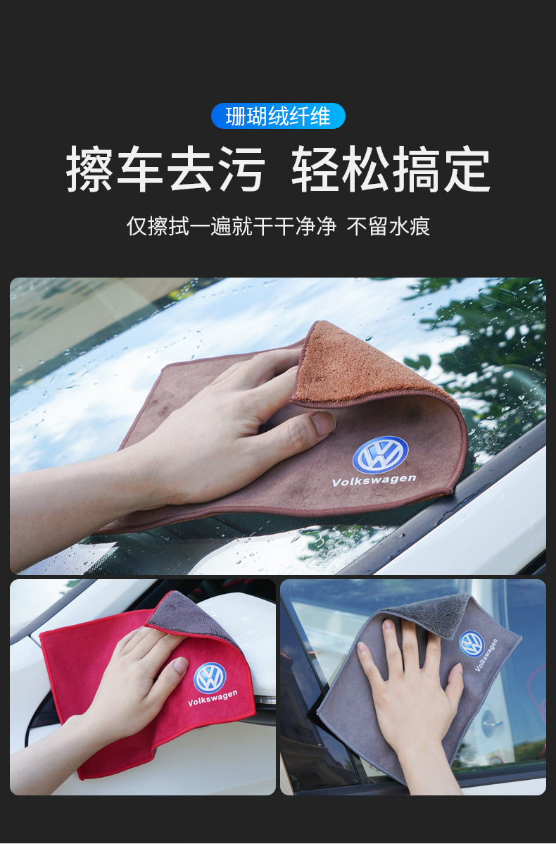 Coral Fleece Car Wash Towel Super Absorbent Non-Shedding Microfiber for Car Detailing and Cleaning for Volkswagen