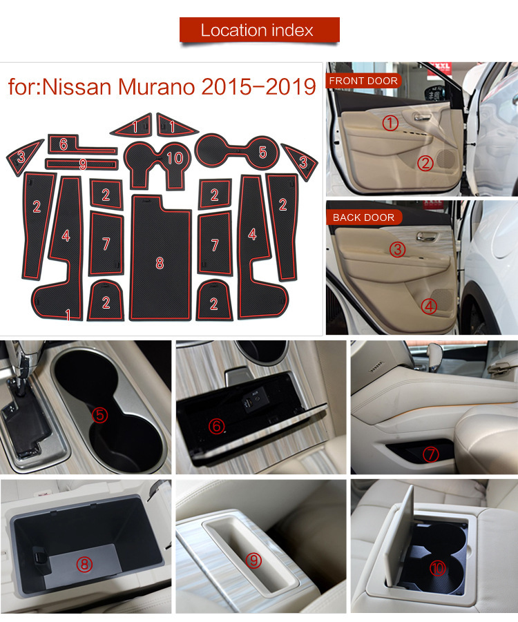 Custom Fit Car Door Groove Mats Rubber Anti-Slip Cup Holder Storage Pads for Nissan Murano