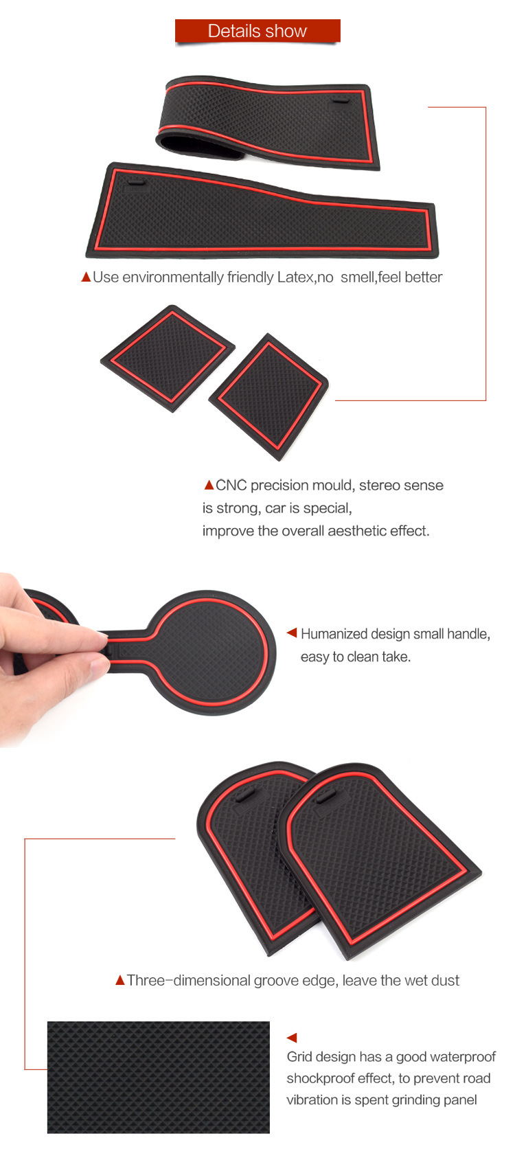 - Complete Package: Includes a full set of custom-sized door slot, armrest box, storage, and cup holder mats, exactly as pictured. Please verify fitment details before purchasing.