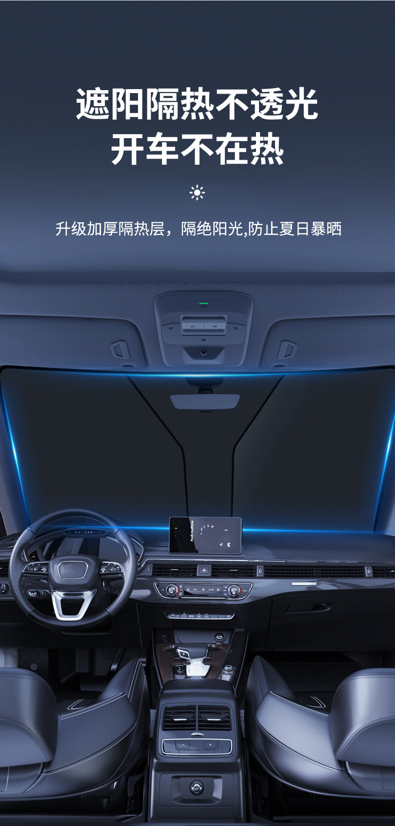 - Performance-Driven Design: This sun visor effectively isolates UV rays, prevents sun exposure damage to the car interior and protects the large screen with its seamless and light-proof design, as depicted.