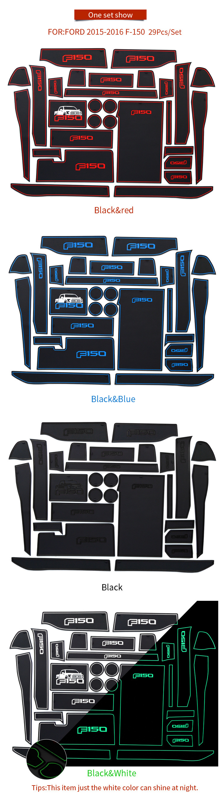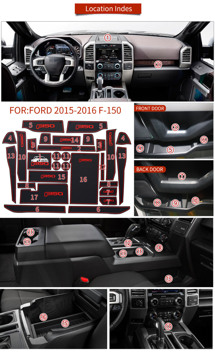 - Complete Package: Includes a full set of Ford F-150 interior door slot and cup holder mats, exactly as pictured.