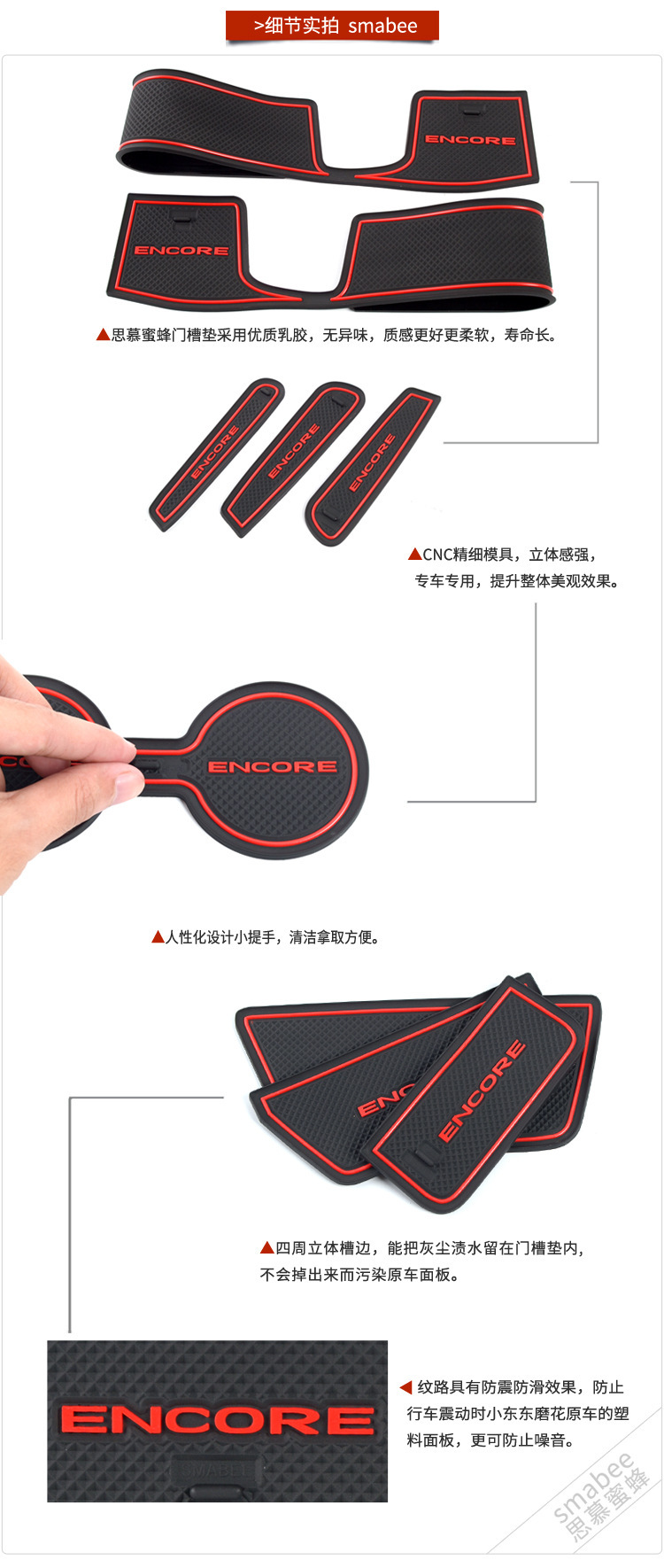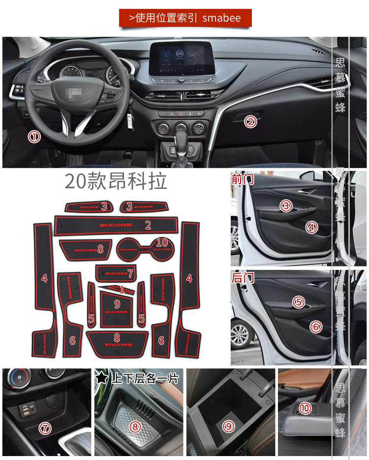 Custom Fit Interior Door Slot Cup Holder Armrest Box Anti-Slip Floor Mats for Buick Encore 2020