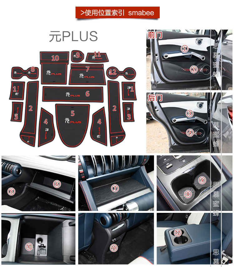Custom Fit Interior Door Slot Mat Storage Box Armrest Pad Cup Holder for BYD Yuan PLUS