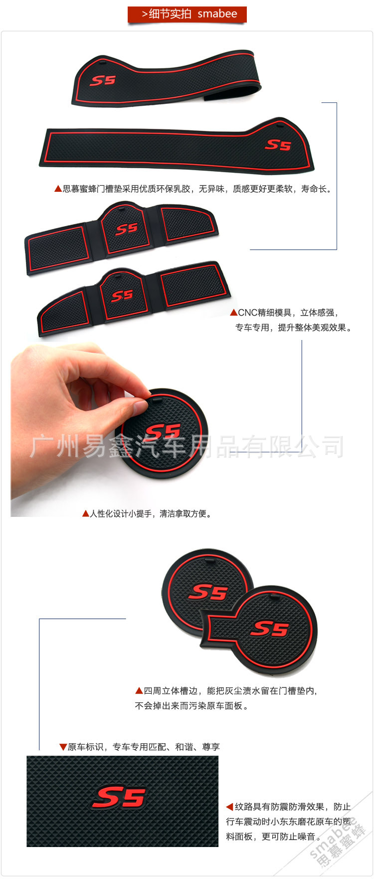 Custom Fit PVC Anti-Dust Non-Slip Door Slot Mat Cup Holder Lining for Jac S5 2013-2017