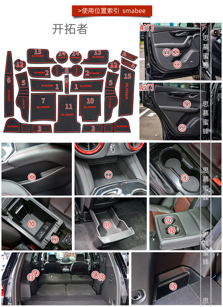 - Complete Package: Includes a full set of PVC door slot and storage mats, exactly as pictured, designed specifically for the 2020 Chevrolet Blazer. Please verify fitment details before purchasing.