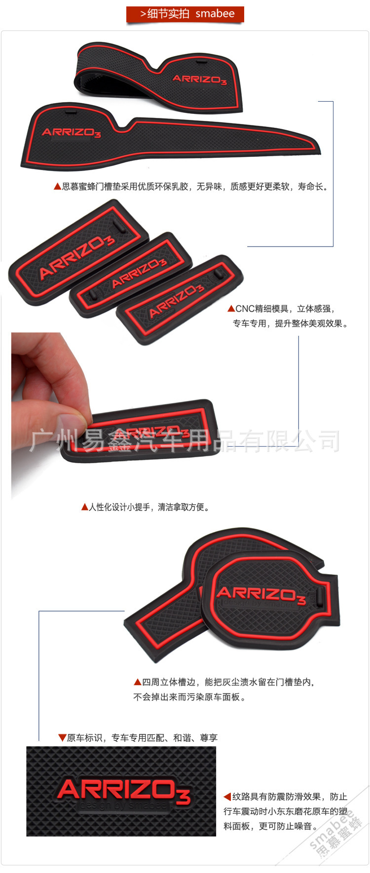Custom Fit PVC Anti-Slip Door Slot Mat Cup Holder Liner Storage Box Pad for Chery Arrizo 3