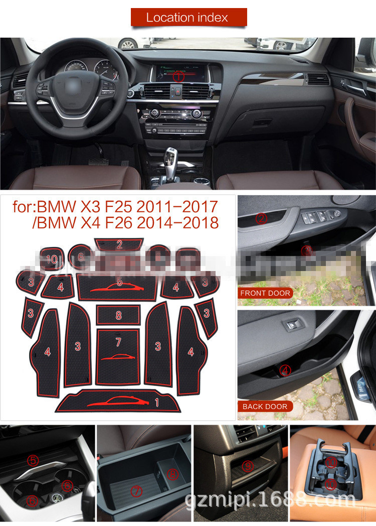 Custom Fit PVC Car Door Slot Mats Cup Holder Pads Console Liners for BMW X3 2011-2017 X4 2014-2018