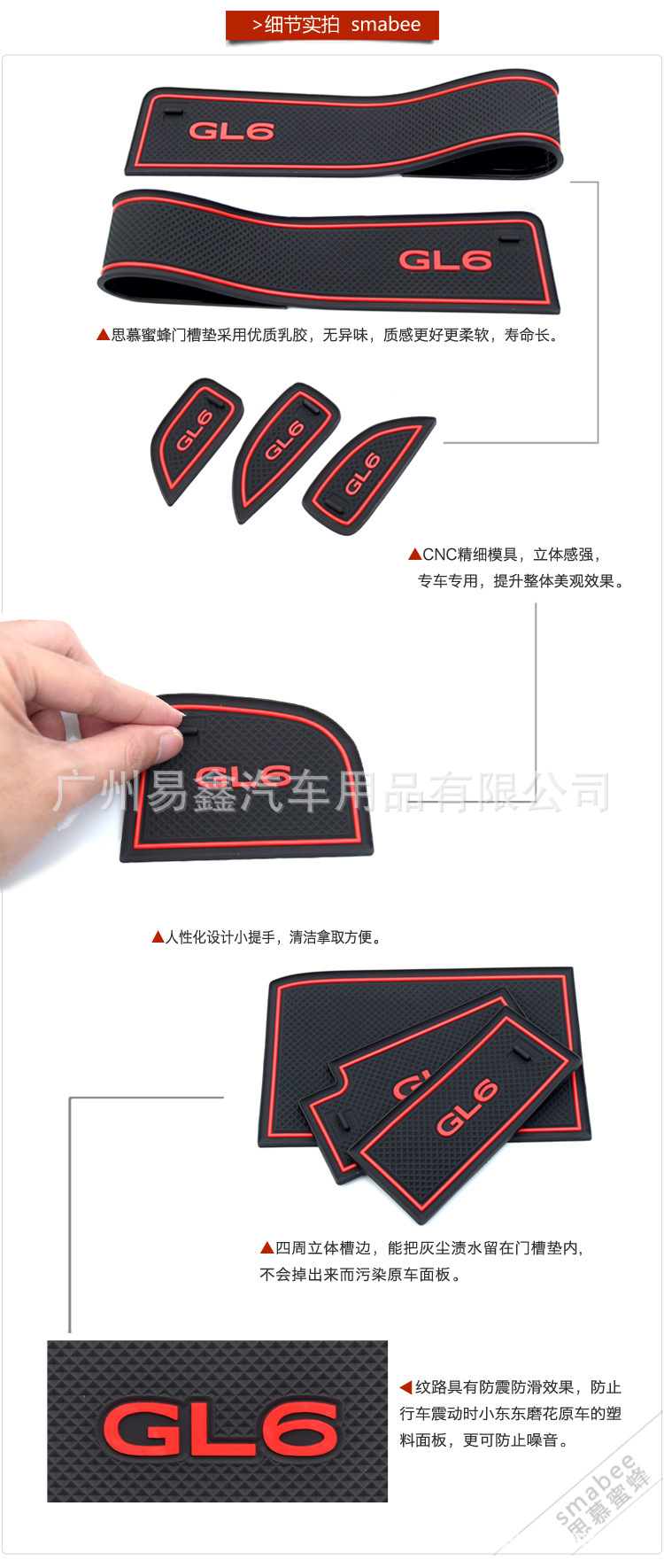 Custom Fit PVC Car Door Slot Mat Cup Holder Pad Set for Buick GL6