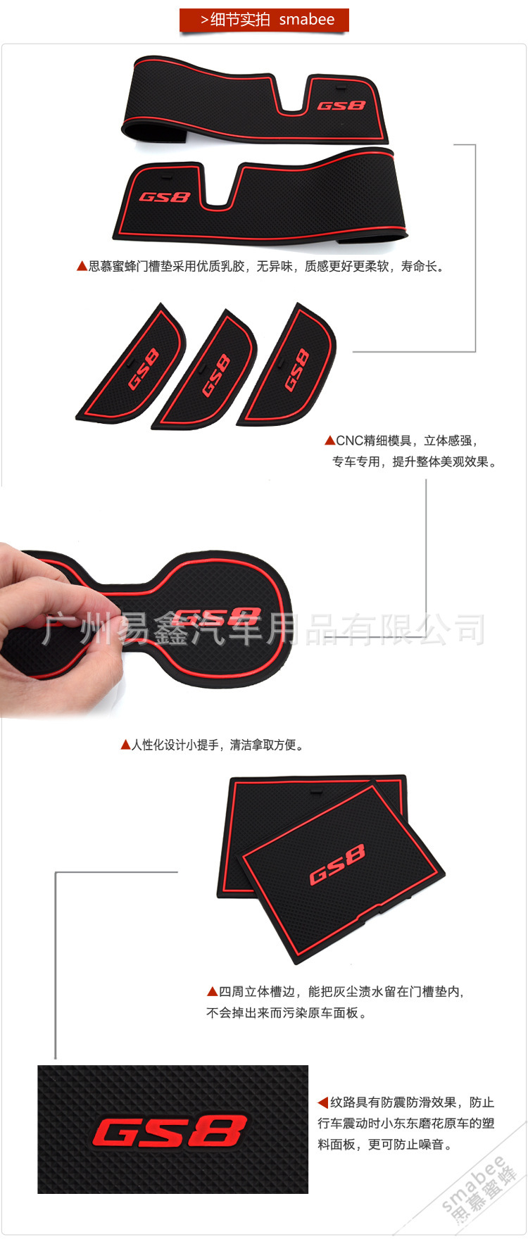 Custom Fit PVC Car Door Slot Mat & Cup Holder Liner Kit for GAC Trumpchi GS8 2017-2019