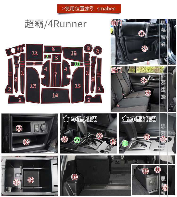Custom Fit PVC Door Slot Mat Cup Holder Liner Console Storage Pad Kit for Toyota 4Runner