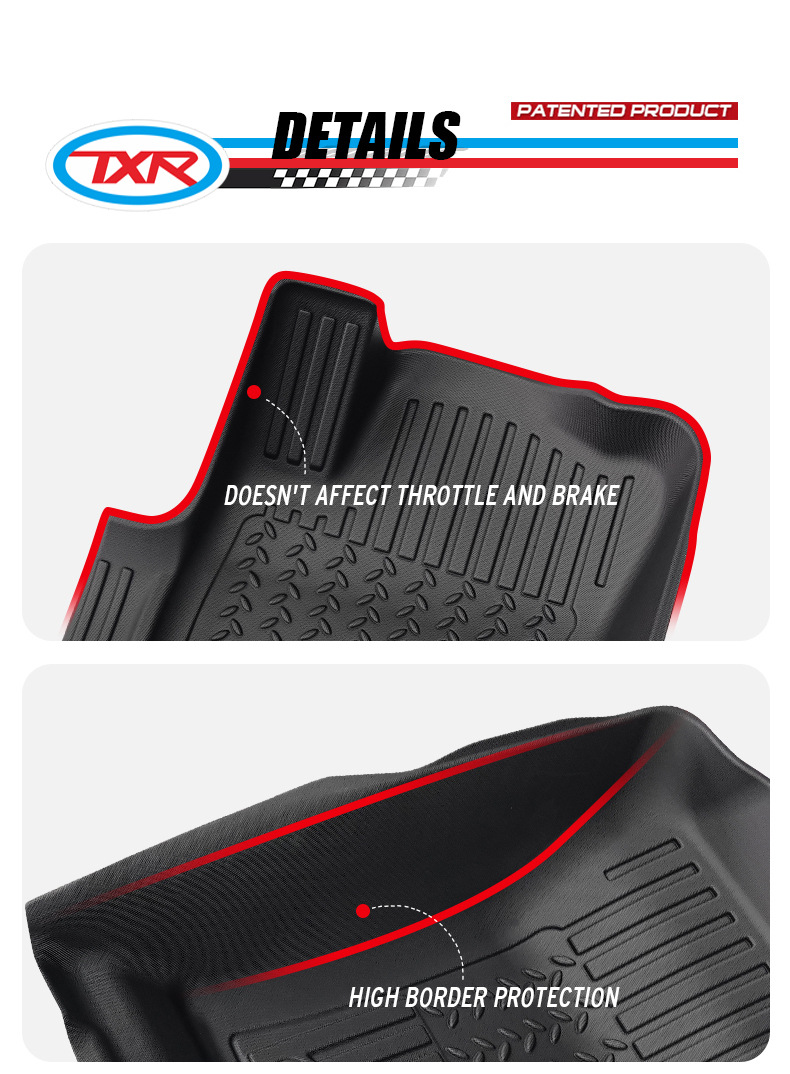 - Heavy-Duty Build: Crafted from high-strength TPE material, these floor mats are durable, weather-resistant, and feature a non-slip textured finish as shown in the images.