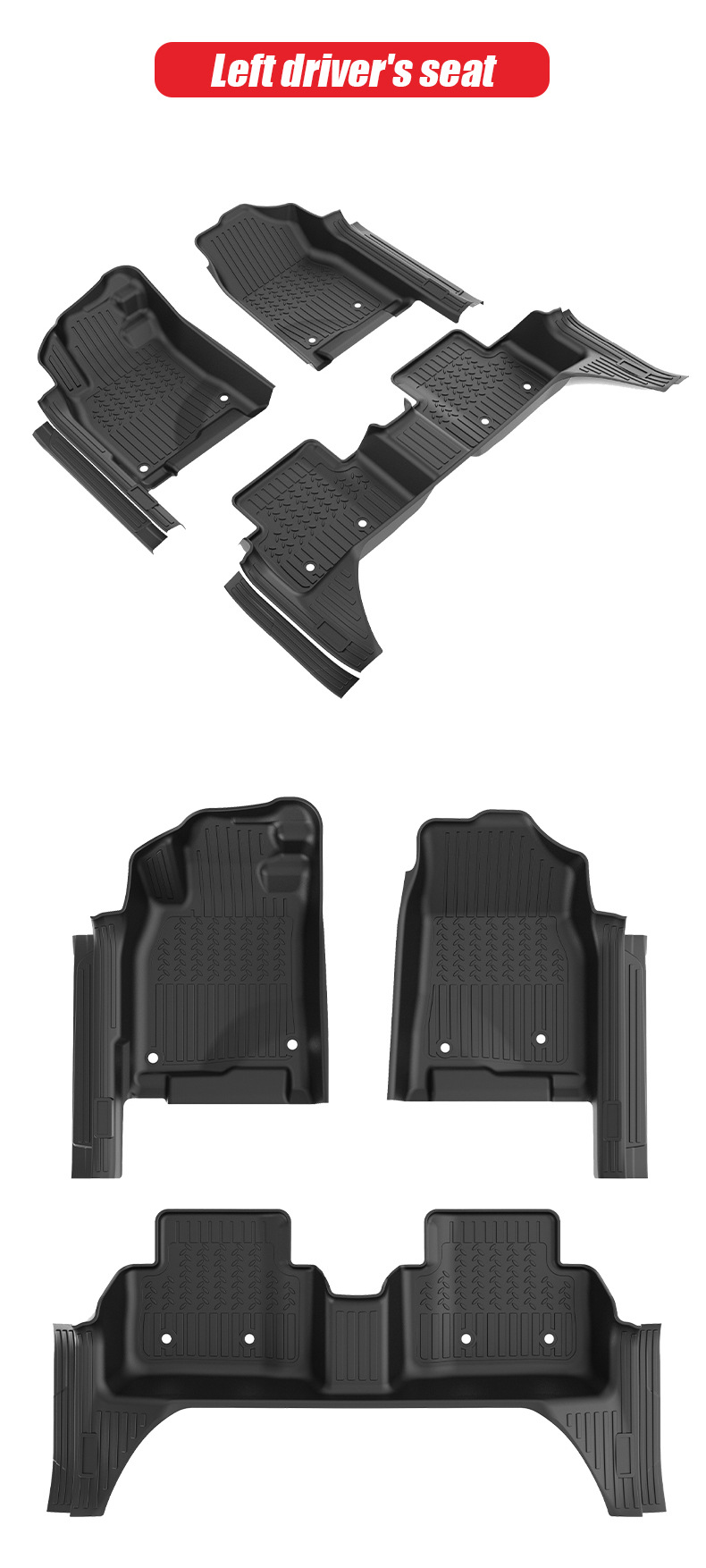 - Easy Bolt-On Installation: Engineered for quick and straightforward installation. The mats are designed to perfectly conform to the floor without shifting.
