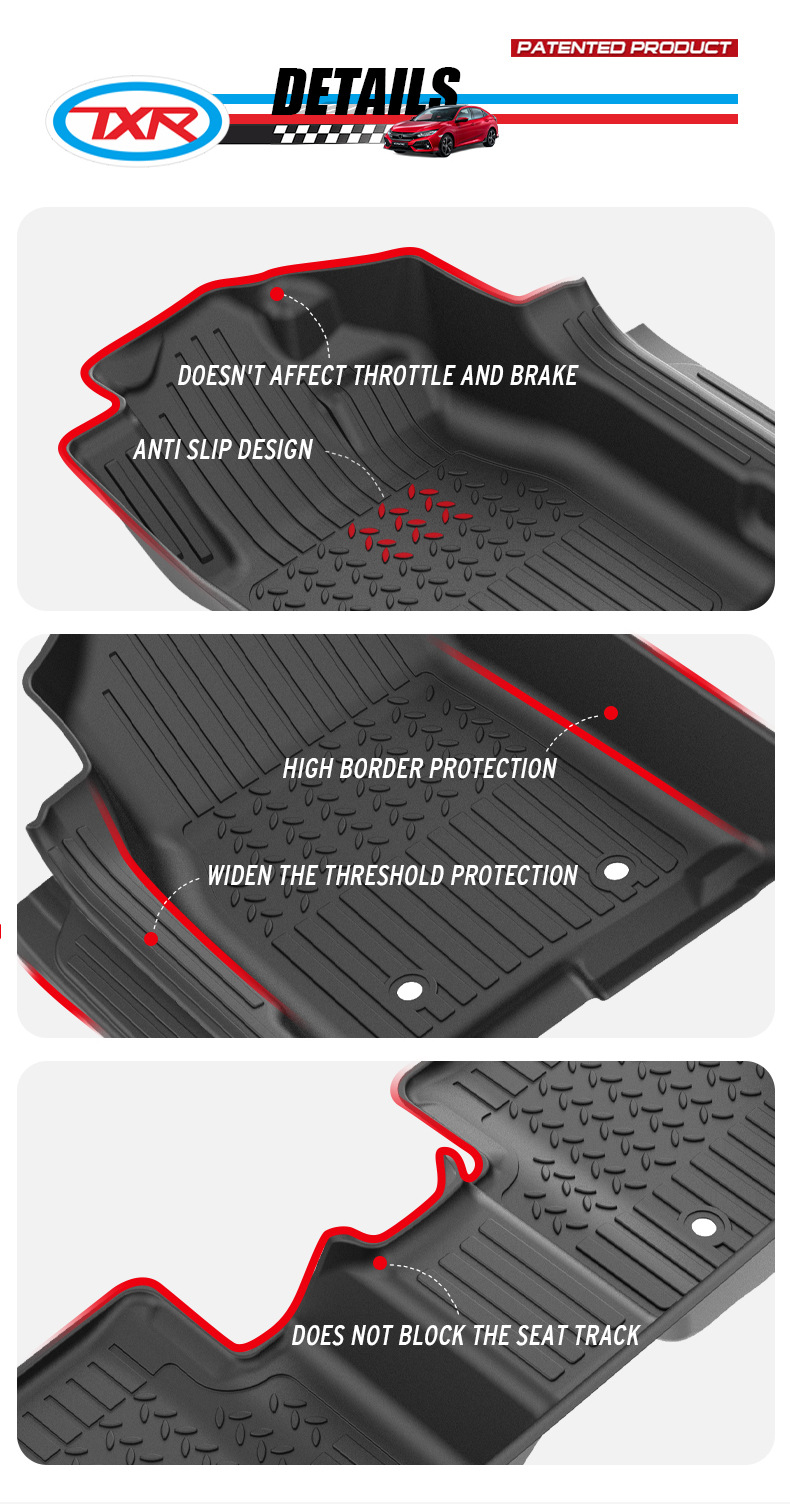 - Direct Fitment: A perfect replacement for Honda Civic FC/FK models from 2016 to 2020. Designed to precisely match the vehicle’s floor contours.