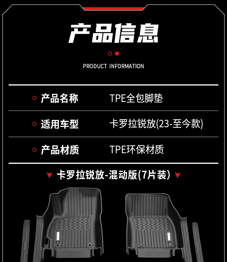 - Direct Fitment: A perfect replacement floor mat set compatible with Toyota Corolla Cross (Hybrid & Fuel versions) from 2023 to present, left-hand drive models. Includes 7 pieces.
