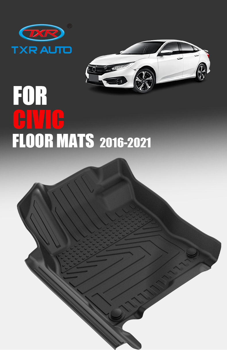 Custom Fit TPE Floor Mats for Honda Civic FC FK 2016-2021 Left Hand Drive Floor Liner 3-Piece Set