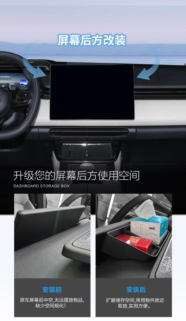- Complete Package: Includes 1x dashboard center console storage box organizer tray, exactly as pictured. Provides a tidy solution for small items.