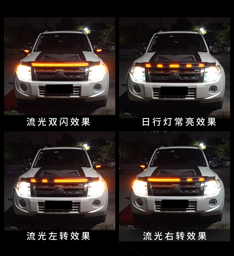 Daytime Running Light LED Strip with Flowing Turn Signal integrated Stone Guard for Mitsubishi Pajero V97 V93 V73