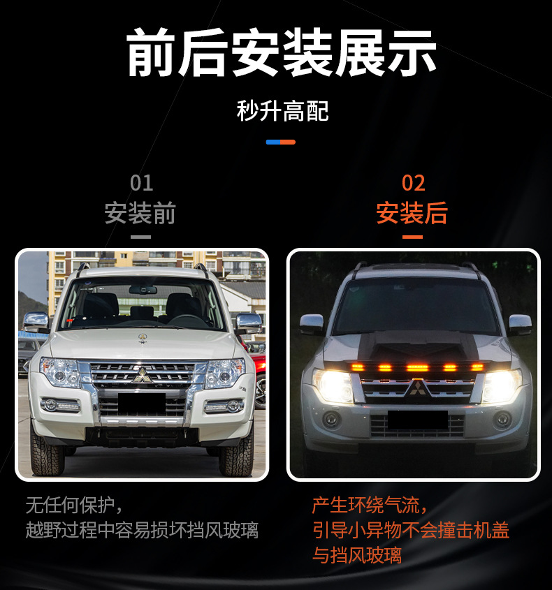 - Direct Fitment: A perfect replacement for Mitsubishi Pajero V97, V93, and V73 models. Specifically designed to integrate seamlessly with the hood and grille area.